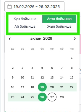 Ескерту! Мәліметтер тек таңдалған кезең бойынша көрсетіледі.