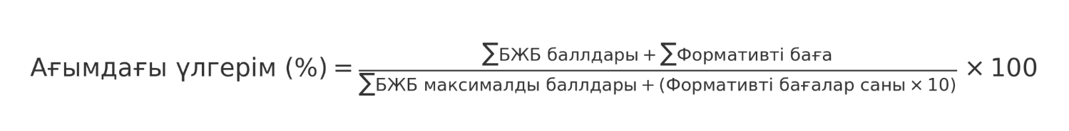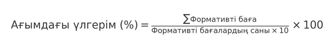 Ағымдағы үлгерім (%) =