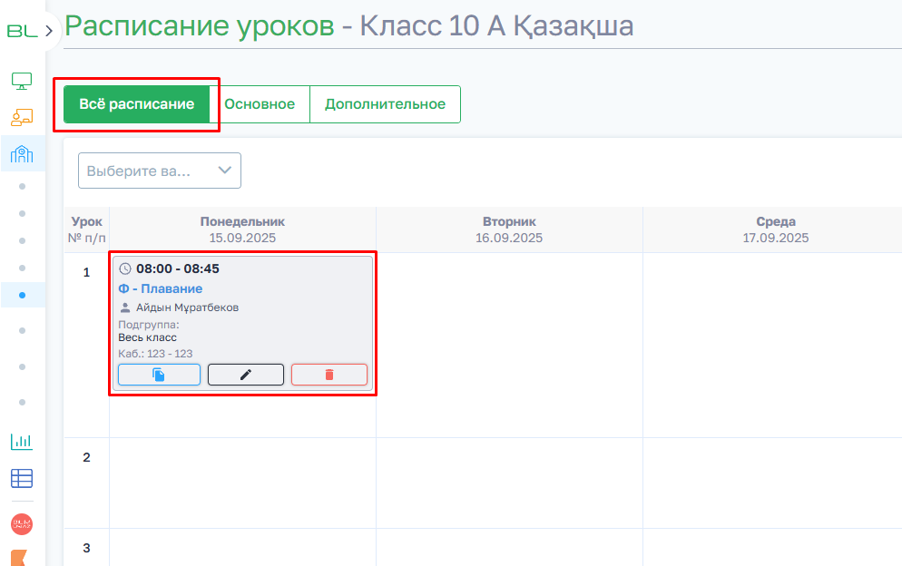 Теперь предмет ДО будет отображаться в расписании выбранного класса.