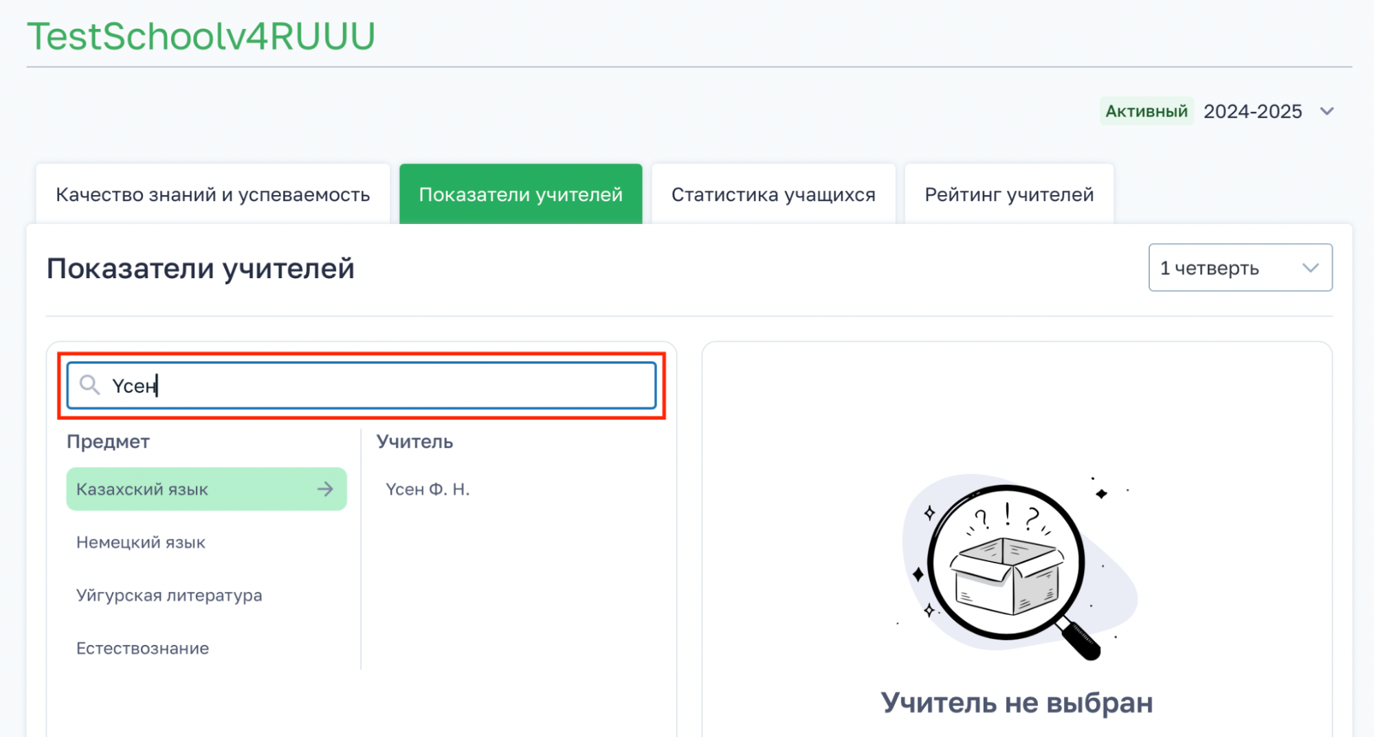 В строке поиска введите фамилию или имя учителя.