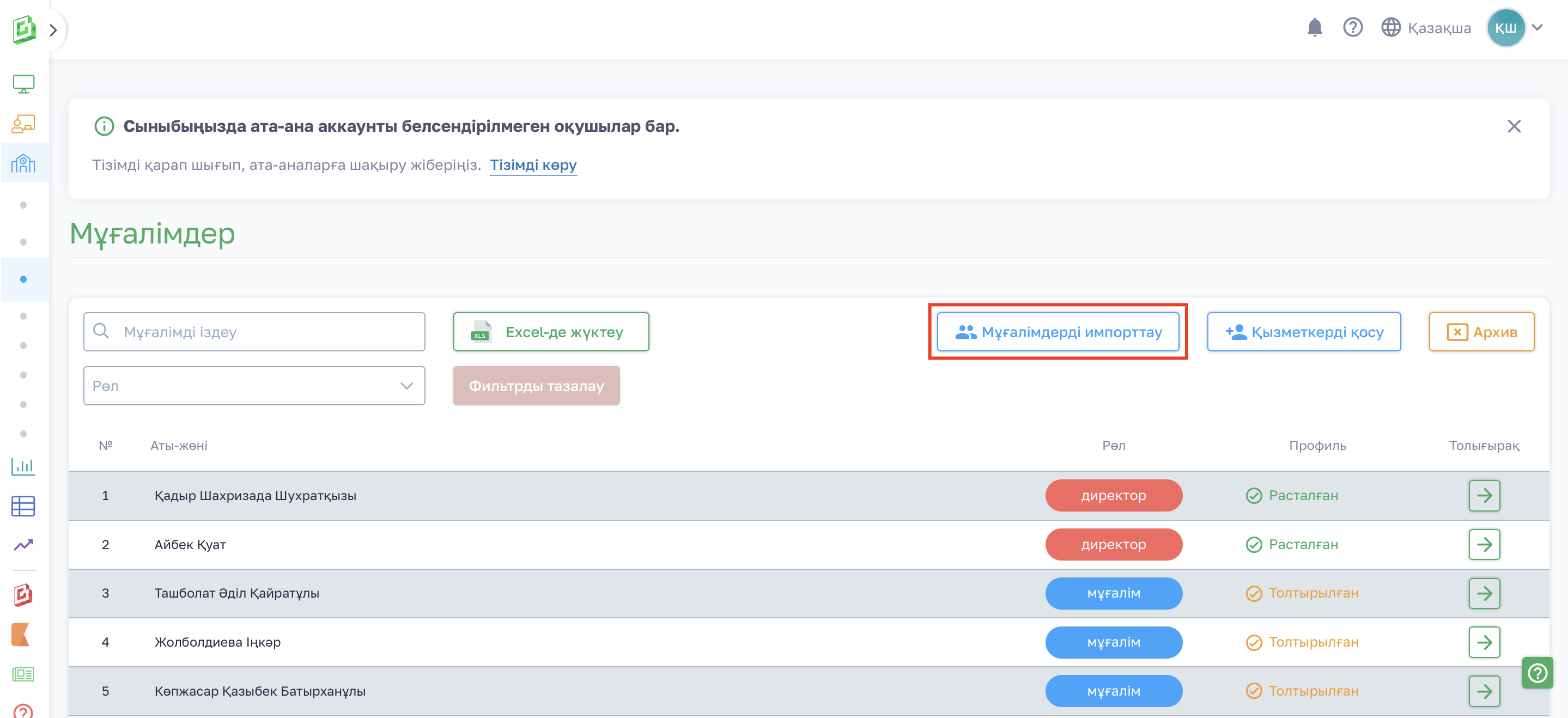 3. «Мұғалімдерді импорттау» батырмасын басыңыз.
