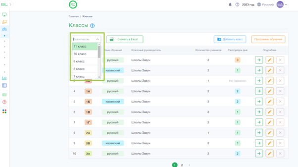 3) Вдоль строки необходимого класса, нажимаем на стрелку в столбце Подробнее