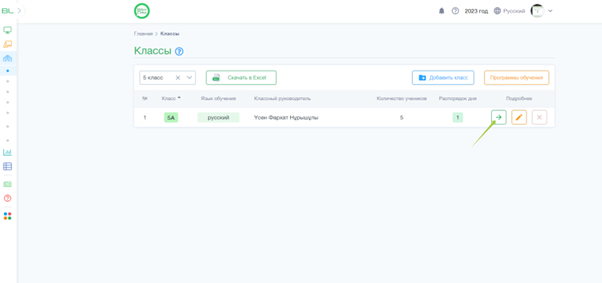 3. В строке необходимого класса, в столбце Подробнее нажимаем на стрелку для перехода в список учеников