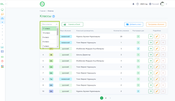 2. Делаем фильтрацию по параллели (выбираем параллель, в котором учится необходимый ученик)