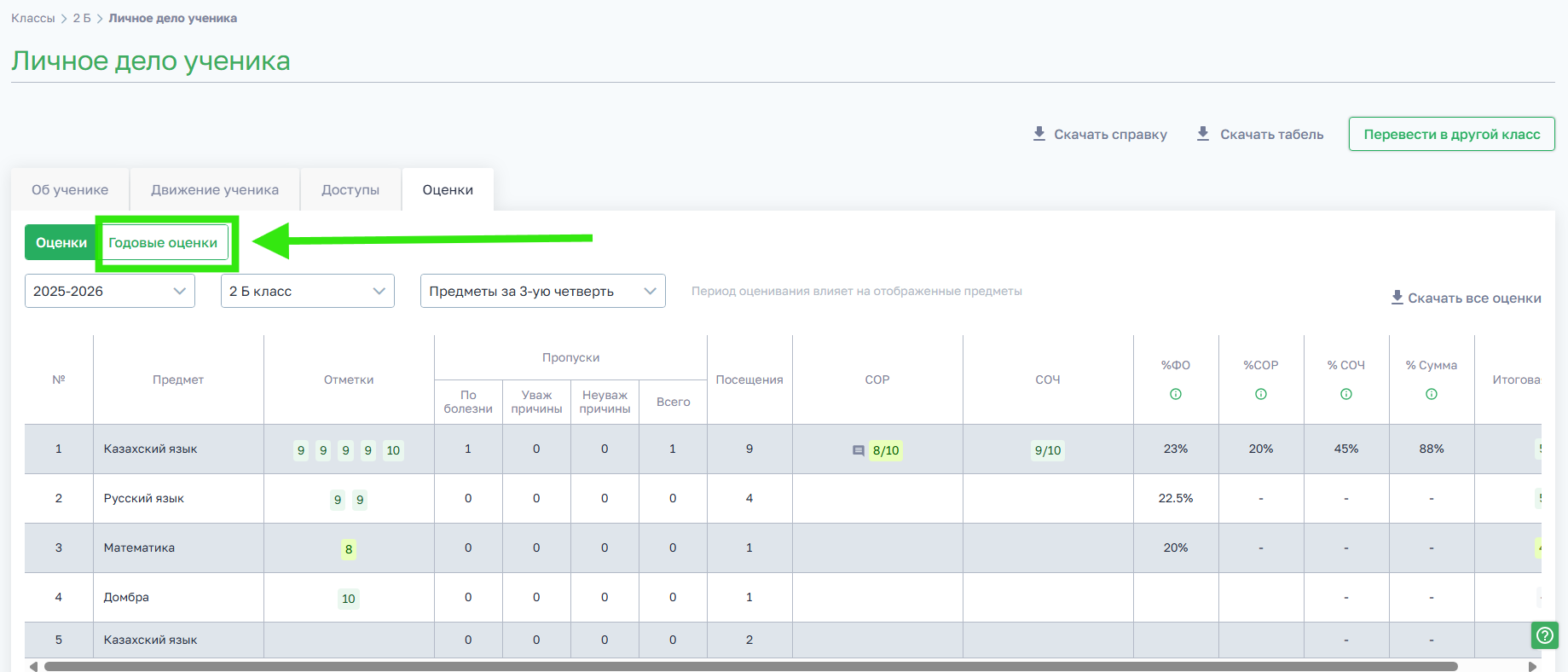 5. Выбираем Годовые оценки
