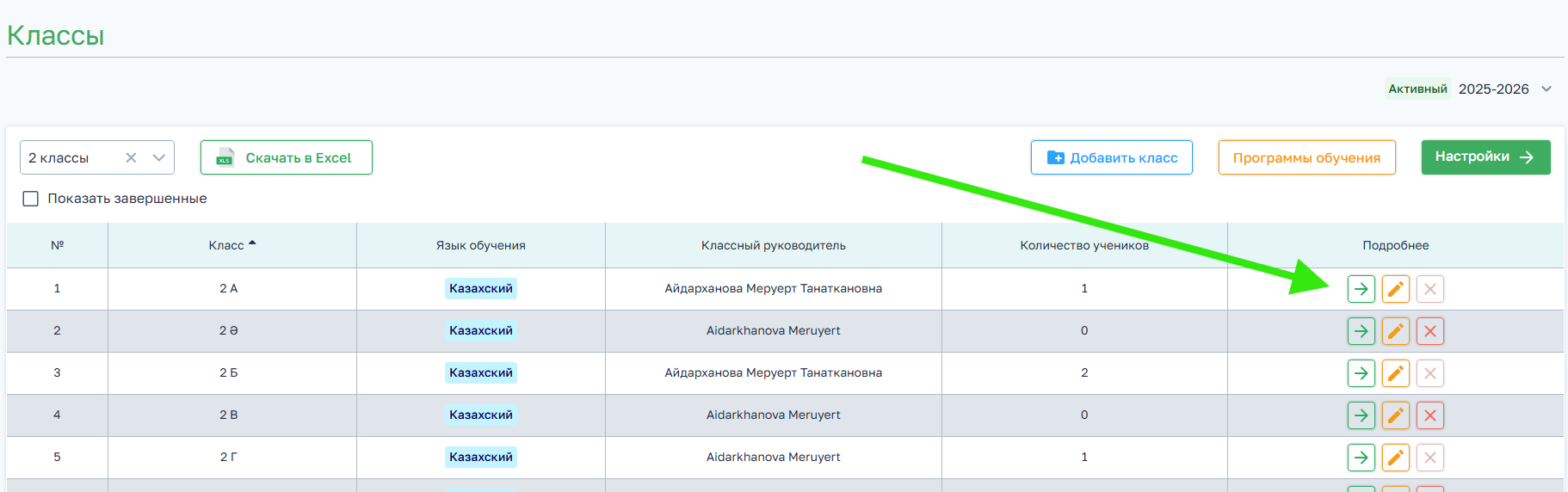 2. Переходим в необходимый класс, нажав на стрелку в столбце Подробнее