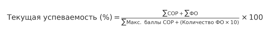 Текущая успеваемость рассчитывается в три этапа, в зависимости от того, какие виды оценок уже выставлены.