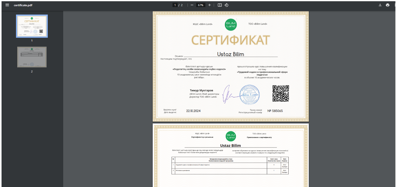5. После скачивания сертификат и приложение к нему будут доступны на вашем устройстве в формате PDF.