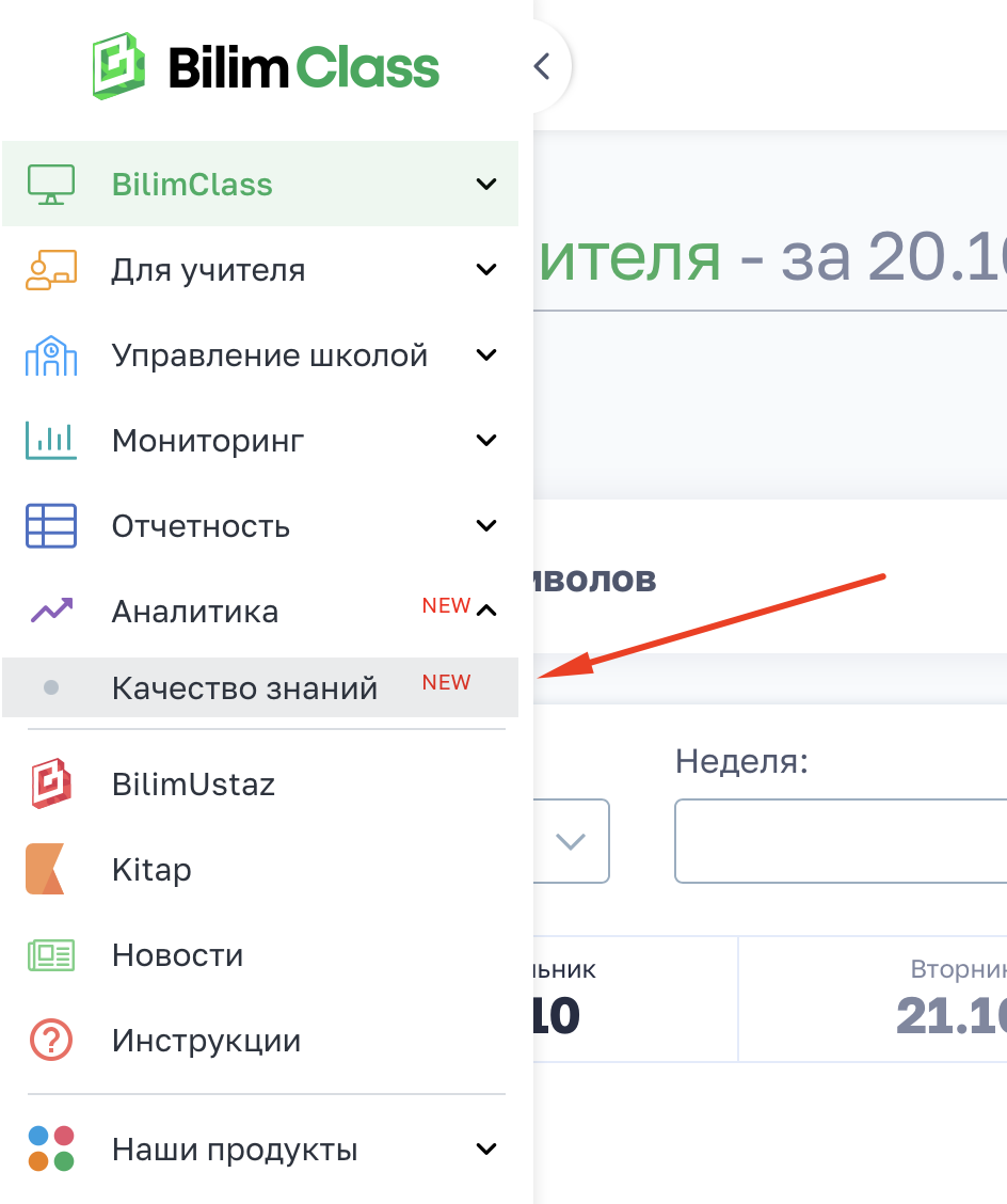 1. Перейдите в левое меню → Аналитика → Качество знаний.