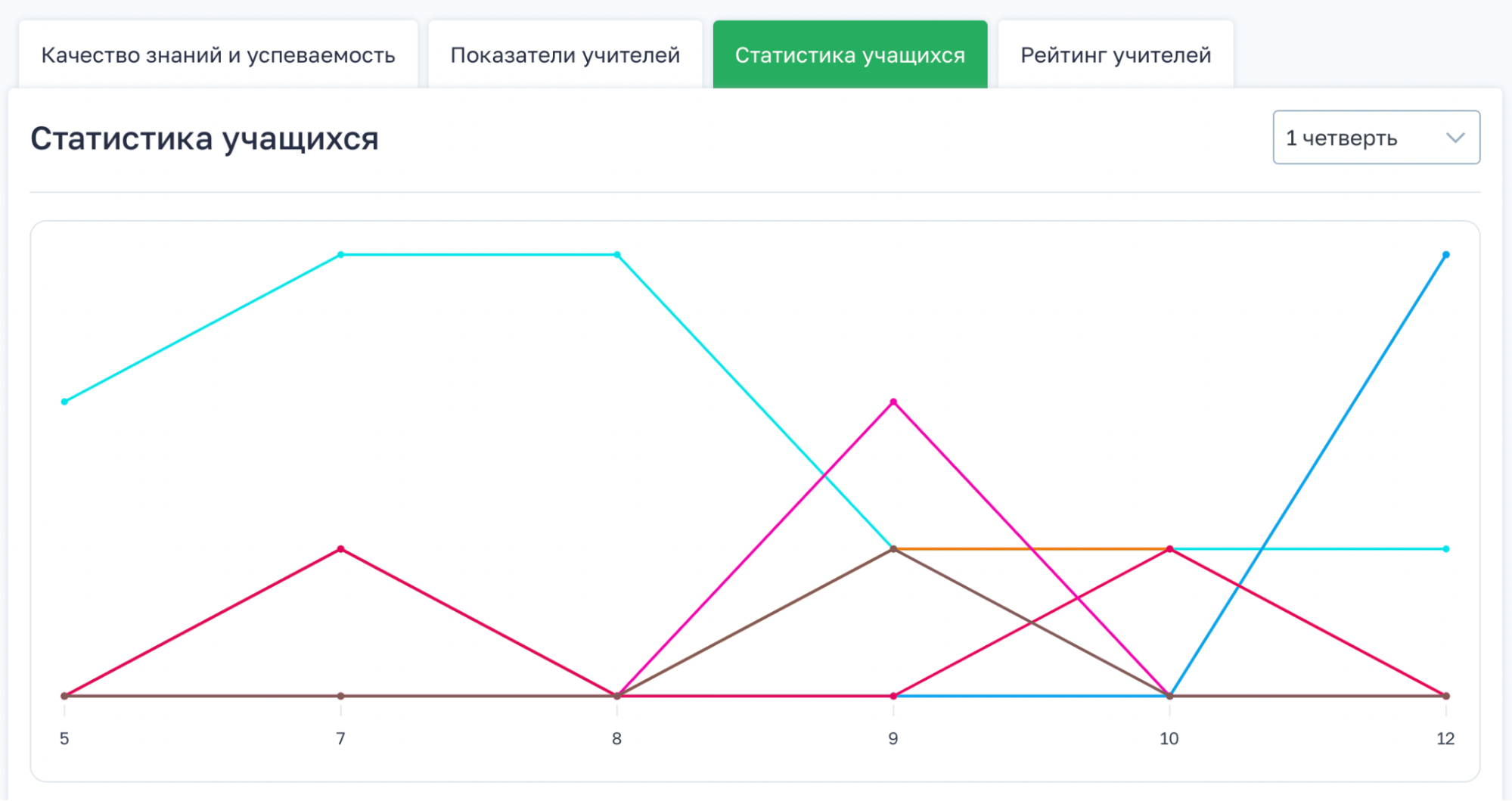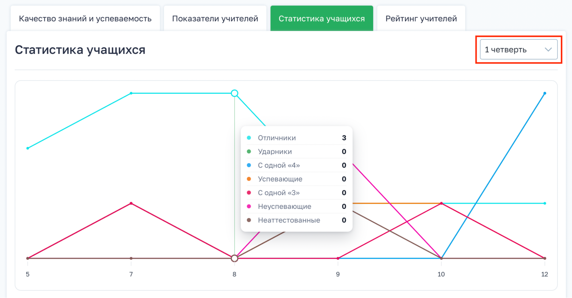Перейдите в левое меню → Аналитика → Качество знаний → Статистика учащихся