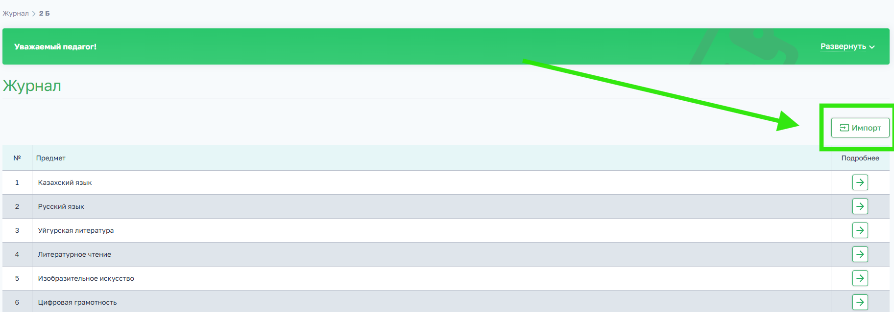 Импорт доступен только при включенной настройке (обратитесь к администраторам BilimClass с запросом включить эту настройку)