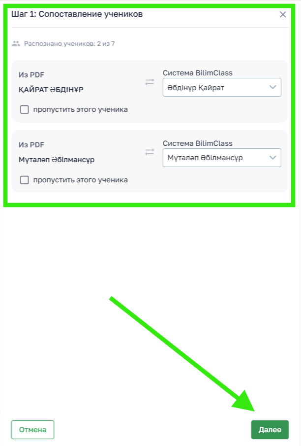 - слева — ученики, распознанные из PDF