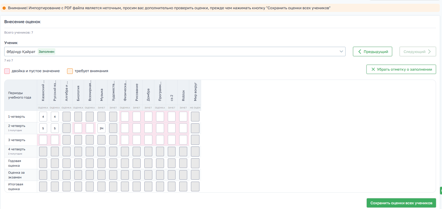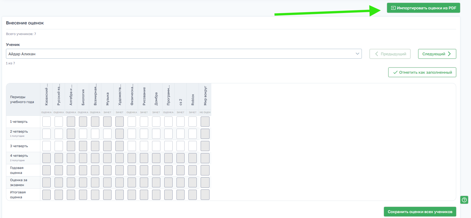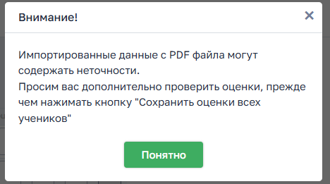 - нажимает кнопку «Импортировать оценки из PDF»