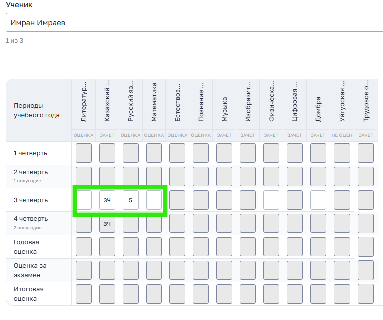2. Внесение оценок